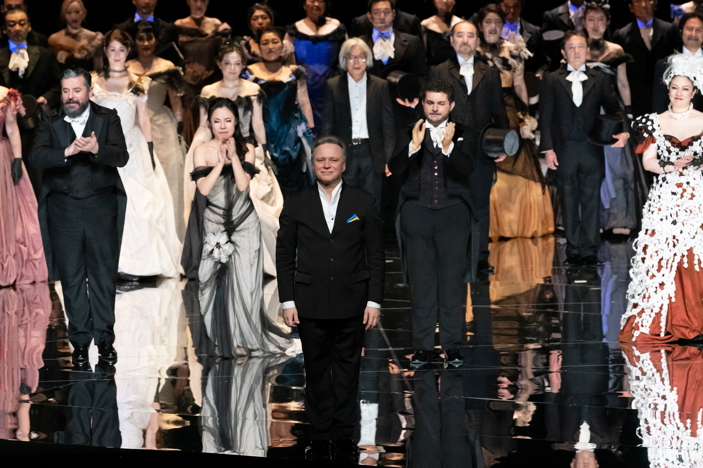 アンドリー・ユルケヴィチ(中央)の胸には国旗と同じ色のチーフ(写真提供=新国立劇場)