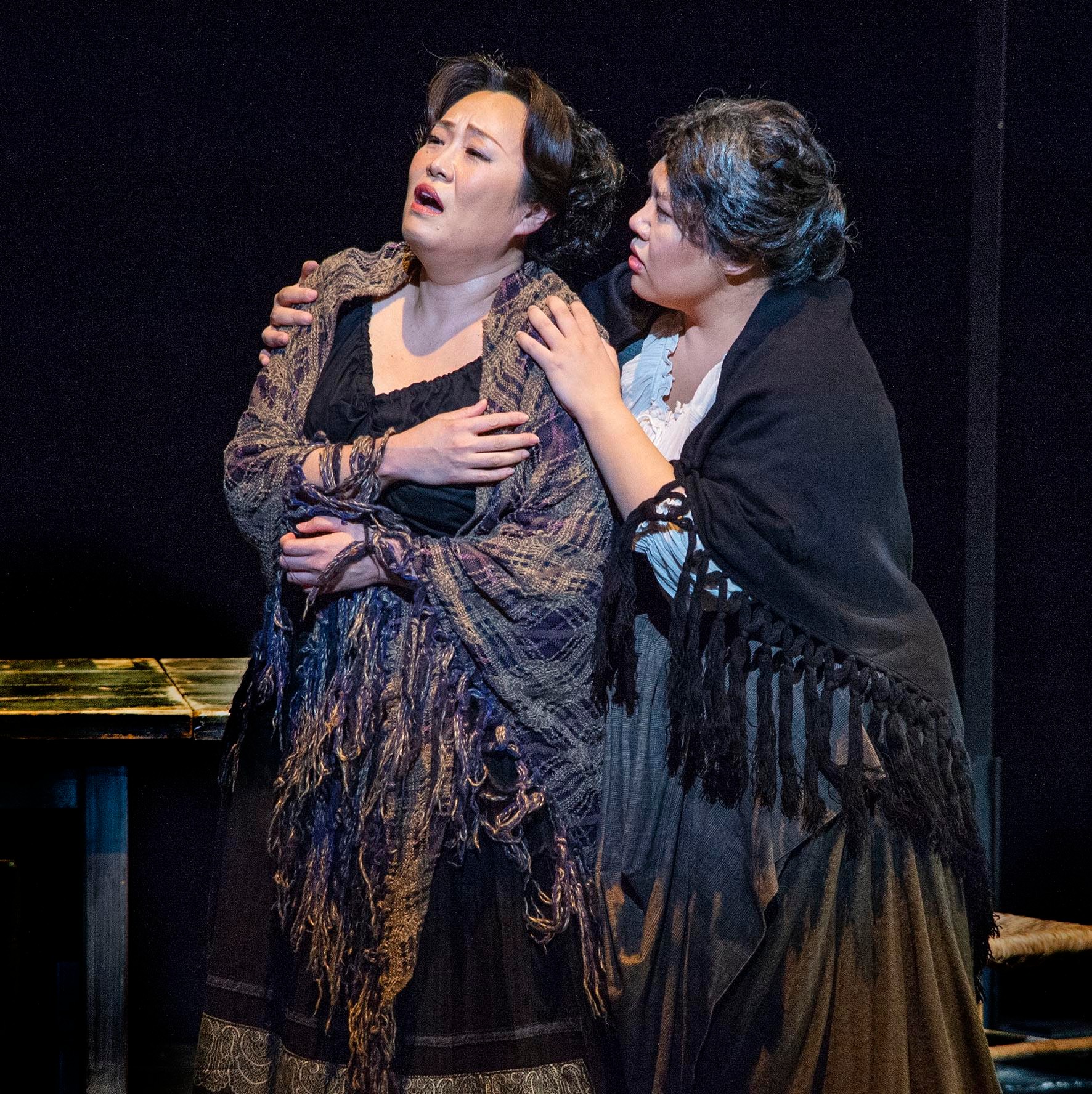 2022年9月4日には「カヴァレリア・ルスティカーナ」(マスカーニ)と「修道女アンジェリカ」(プッチーニ)の2本立てを古川演出、瀬山指揮で上演した。前者の清水華澄(サントゥッツァ=メゾ・ソプラノ)、藤田卓也(トゥリッドゥ=テノール)の主役コンビ、後者のヒロイン竹多倫子(ソプラノ)はそれぞれの役柄で目下、日本屈指の実力者。声の輝き、ディレクションの確かさ、演技の迫力とも申し分ない。「アンジェリカ」の修道女たちはオーディションで選ばれた新人中心で、古川がテレワークも交え、マンツーマンで指導して竹多に拮抗できるまでのアンサンブルに仕上げた。
