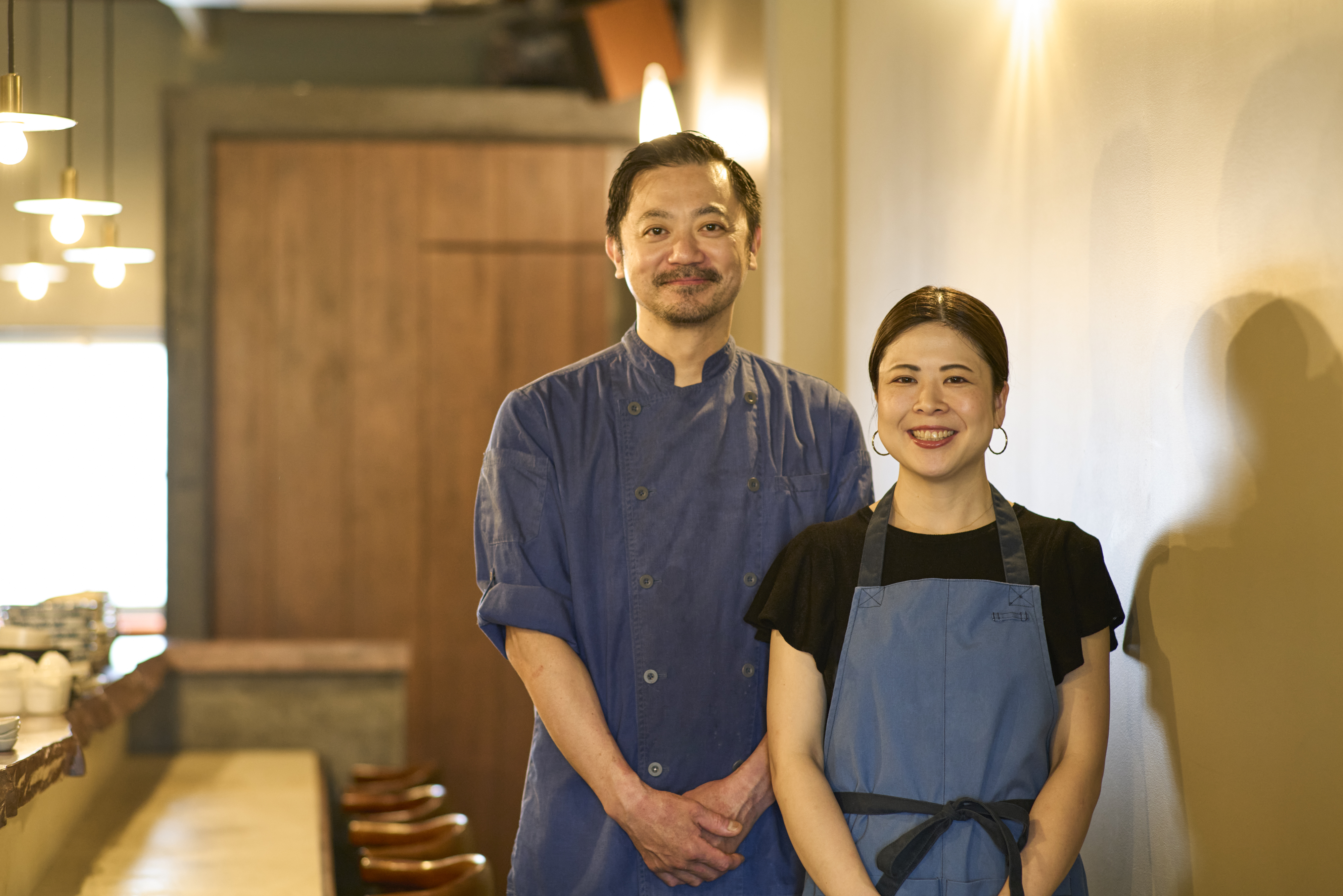 1978年東京都生まれ。調理師学校卒業後、上海料理店や「東魁樓」、「桃亭」、「筑紫樓」丸の内店といった広東料理店に勤務したのち、外食企業に入社して経営のノウハウを学ぶ。昼は担担麺専門店、夜はコースで中国料理を提供する「虎穴」を経て、2017年に東京・木場に担担麺専門店「香噴噴 東京木場」を開業。23年に移転し、中国料理店「香噴噴 XIANG PEN PEN」に業態を転換。サービスとドリンクを担当する彩也佳氏(右)とともに。