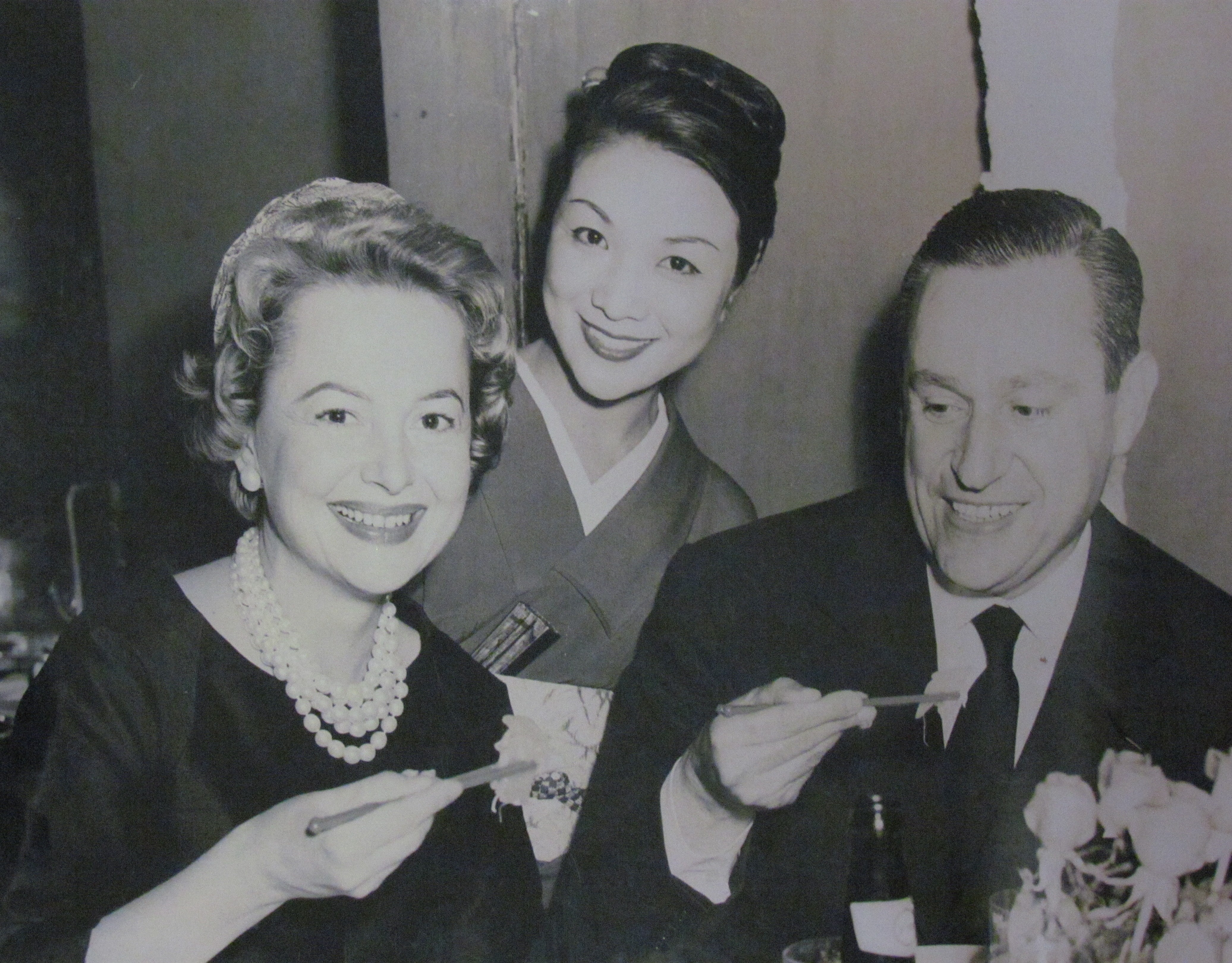 女優オリビア・デ・ハヴィランド夫妻が光子といっしょの写真もあった。日本料理らしいものを、仲睦まじく箸でつまんでいる。
